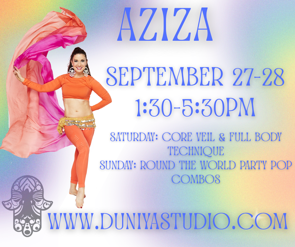 Hosting Aziza has been a gift far beyond the dance itself. She’s easy to work with, generous in spirit, and always brings lightness and warmth to every visit. It’s rare to find a teacher who not only elevates your dancing but also leaves you with cherished memories of friendship, community, and personal growth.