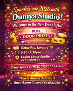Celebrate the New Year with Duniya Studio at our Welcome in the New Year Hafla in Ottawa. Dance, performances, door prizes, and community — January 10, 5:30–7:30pm.